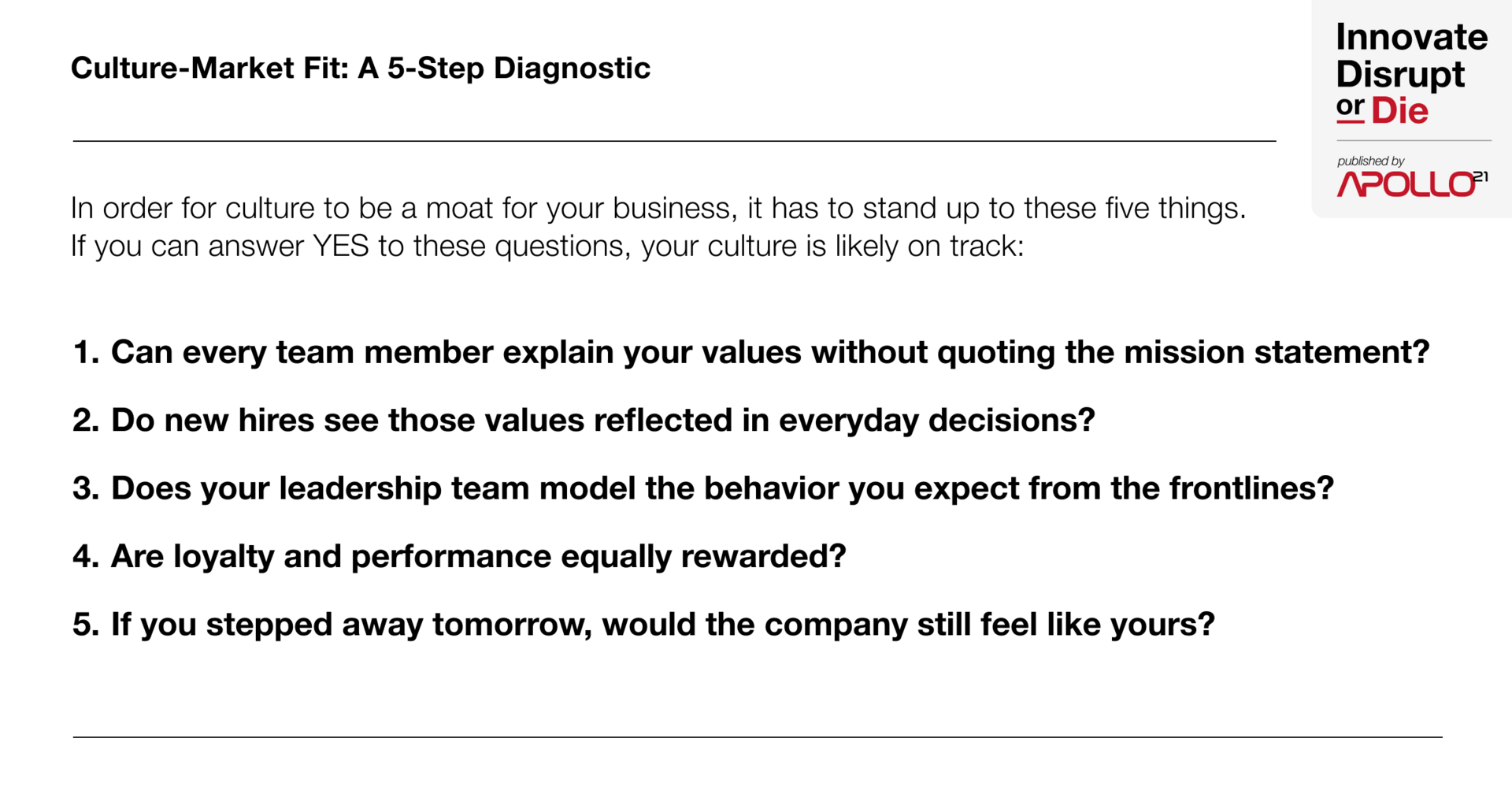 In order for culture to be a moat for your business, it has to stand up to these five things. If you can answer YES to these questions, your culture is likely on track: